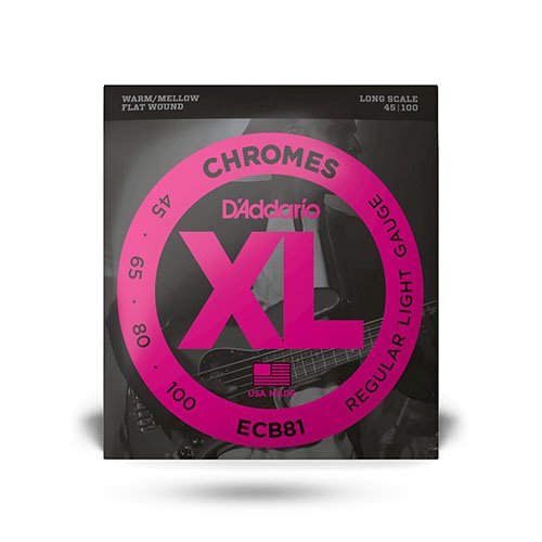 ECB81 ES UN JUEGO DE CUERDAS DE CUERDA PLANA DE CALIBRE LIGERO PARA BAJOS ELÉCTRICOS DE ESCALA LARGA. LOS XL CHROMES SE DESTACAN POR SU TACTO SUAVE Y SU TONO CÁLIDO Y SUAVE, ESENCIAL PARA EL SONIDO Y EL ESTILO DE MUCHOS MÚSICOS DE JAZZ, BLUES Y ROCK.