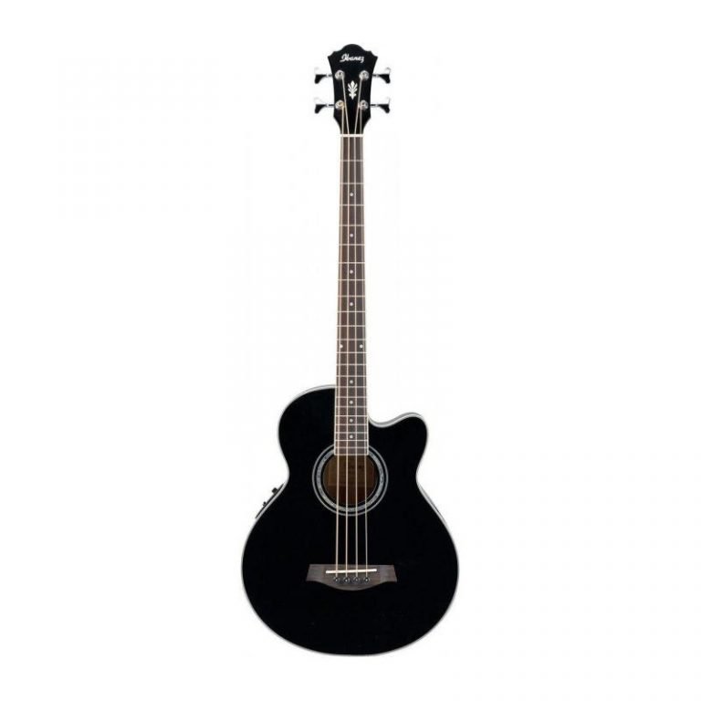 Además, cuenta con un afinador integrado y características útiles como cuerpo de gathis, cuello de caoba, puente y diapasón de palisandro, pickup y preamplificador Ibanez, salidas XLR y ¼“, cejilla y rieles Ibanez Ivorex II, pins de plástico negro en el puente, agarre de correa Ibanez y un acabado en negro.